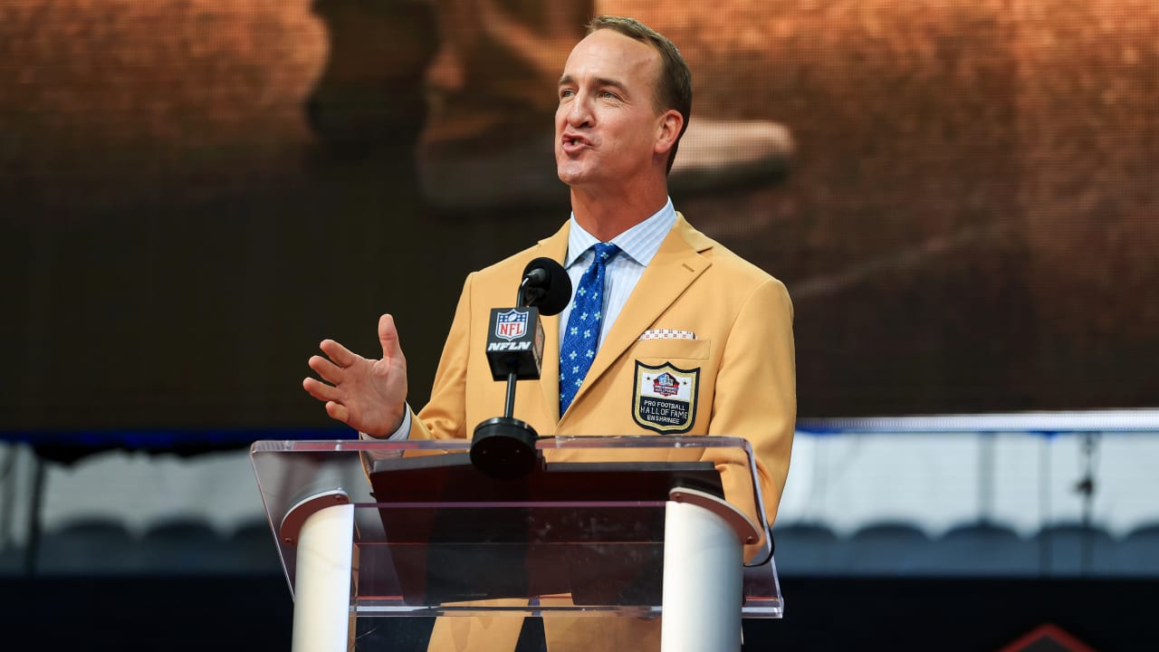 Peyton Manning Hall Of Fame Speech : My2f5yjkvk7jbm / Peyton manning was working the phones.. When looking back on his brother's career, peyton marveled at eli and the giants' improbable super bowl runs during the 2007 and 2011 postseasons. Peyton manning, a 2017 college football hall of fame inductee from tennessee delivers a passionate, entertaining and inspirational speech on behalf of his. Chief among them will be peyton manning, and his speech. The evolution of charles woodson. The pro football hall of fame has done a great job of keeping the identity of the new class of hall of fames secret for the last two weeks.